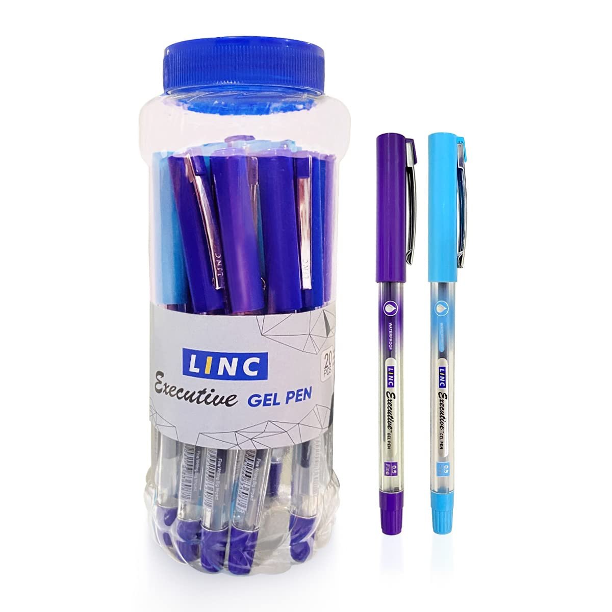 Linc Executive Gel Pen Jar | 0.5mm, Blue Ink Gel Pens | Jar of 20 Units | Blue Gel Pen Set For School ,